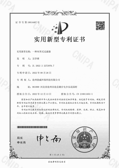 • 風(fēng)琴式過濾器專利
